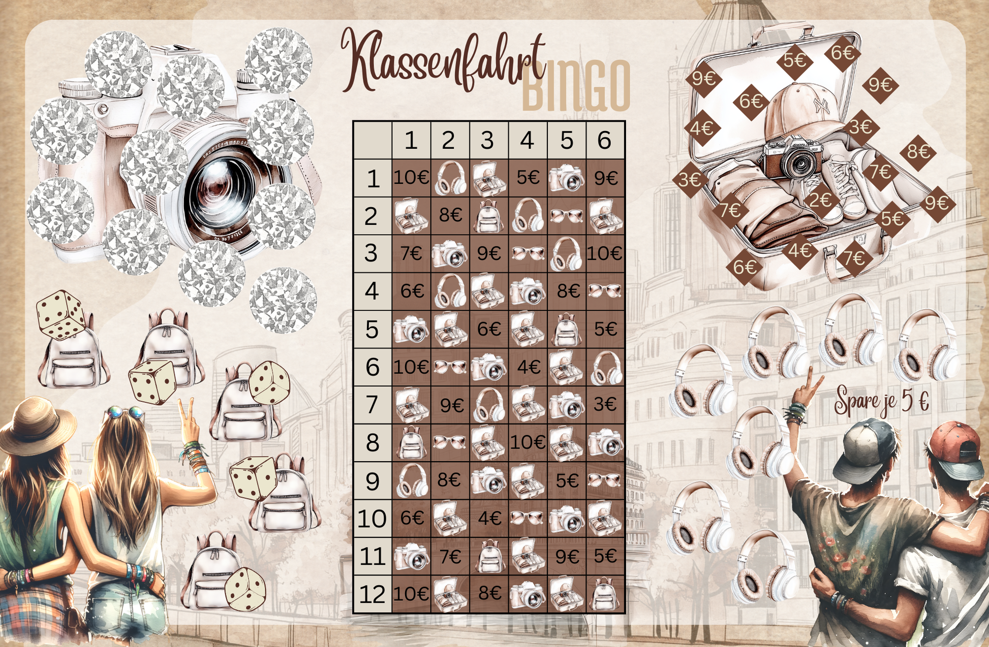Davon eine Würfelchallenge, zwei Rubbelchallenges, zwei Sparchallenges und ein Klassenfahrt Bingo.