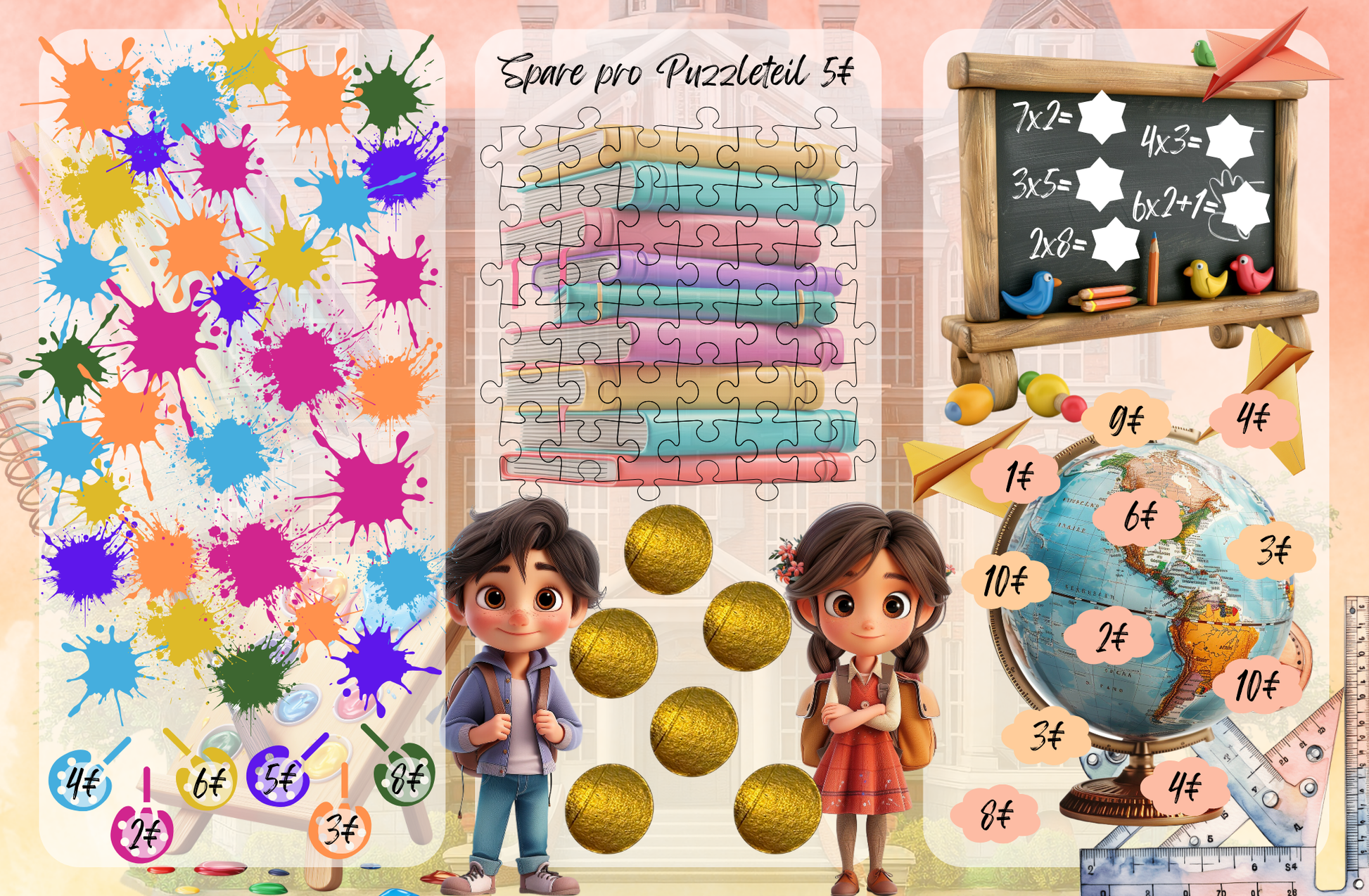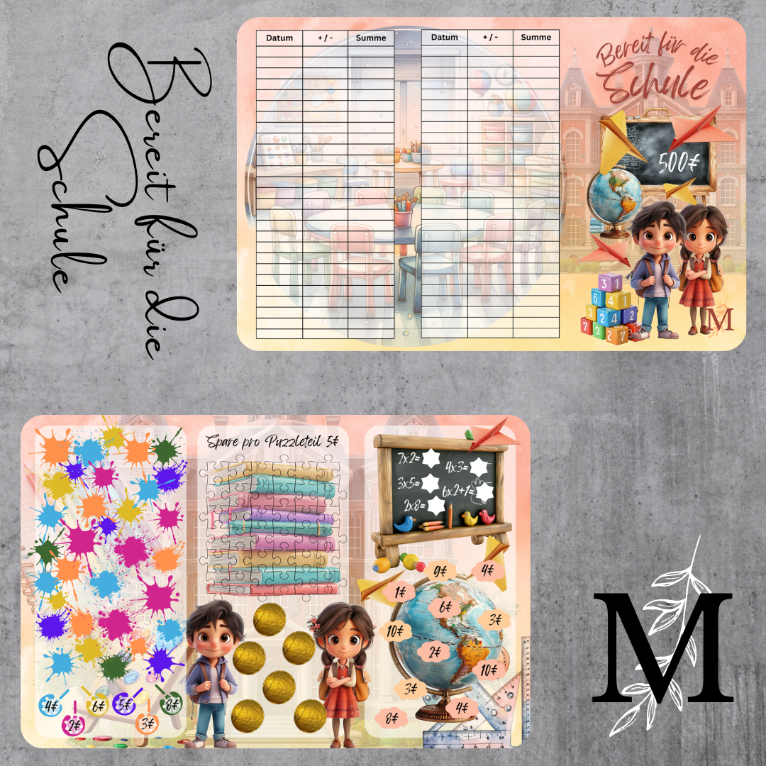 Die "Bereit für die Schule" Sparchallenge ist eine Dreierklappkarte.