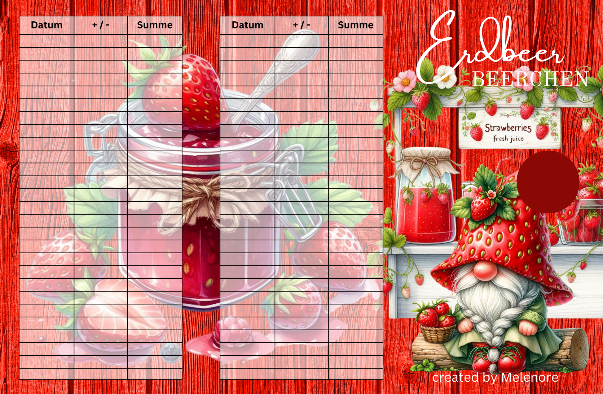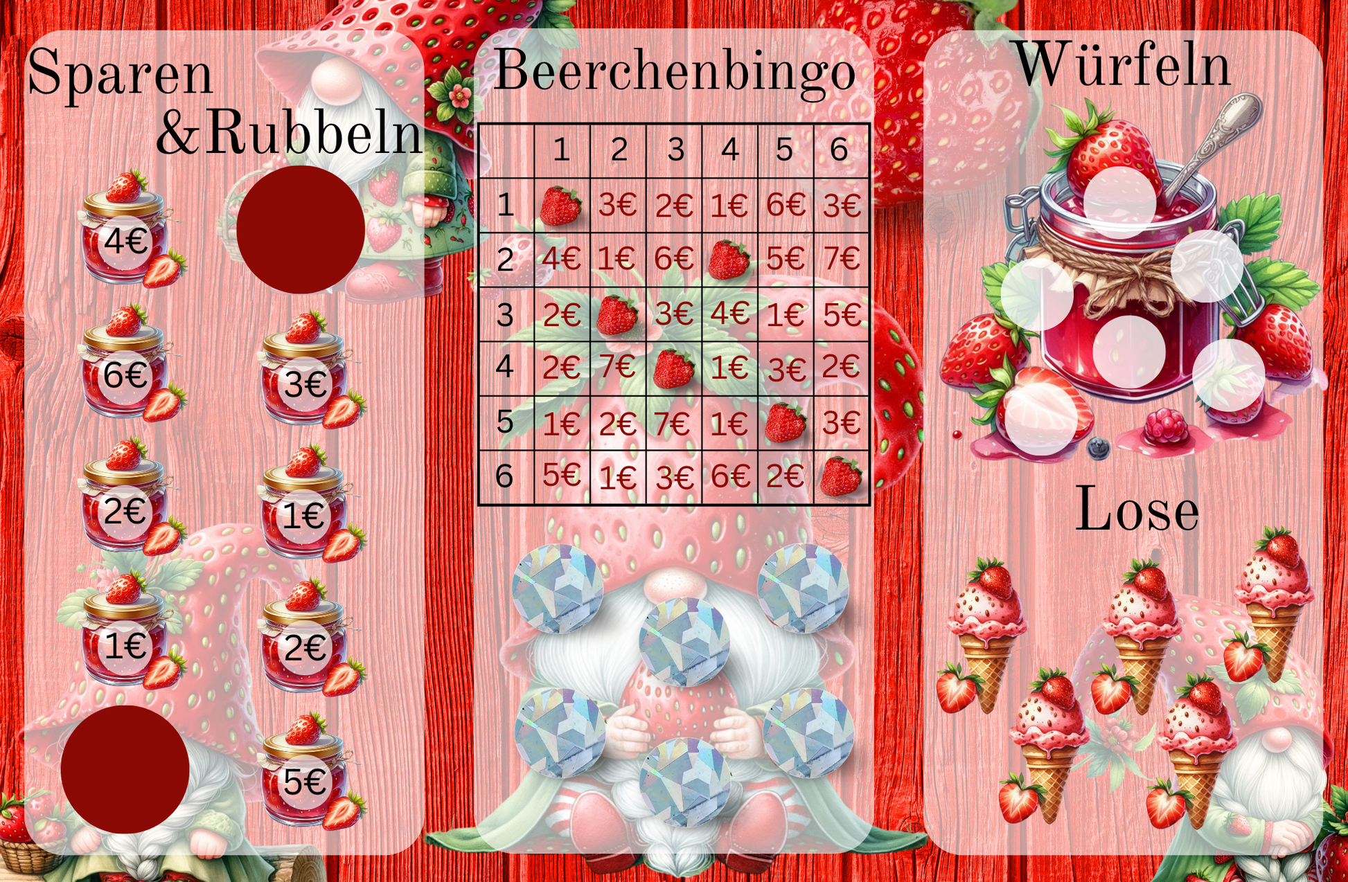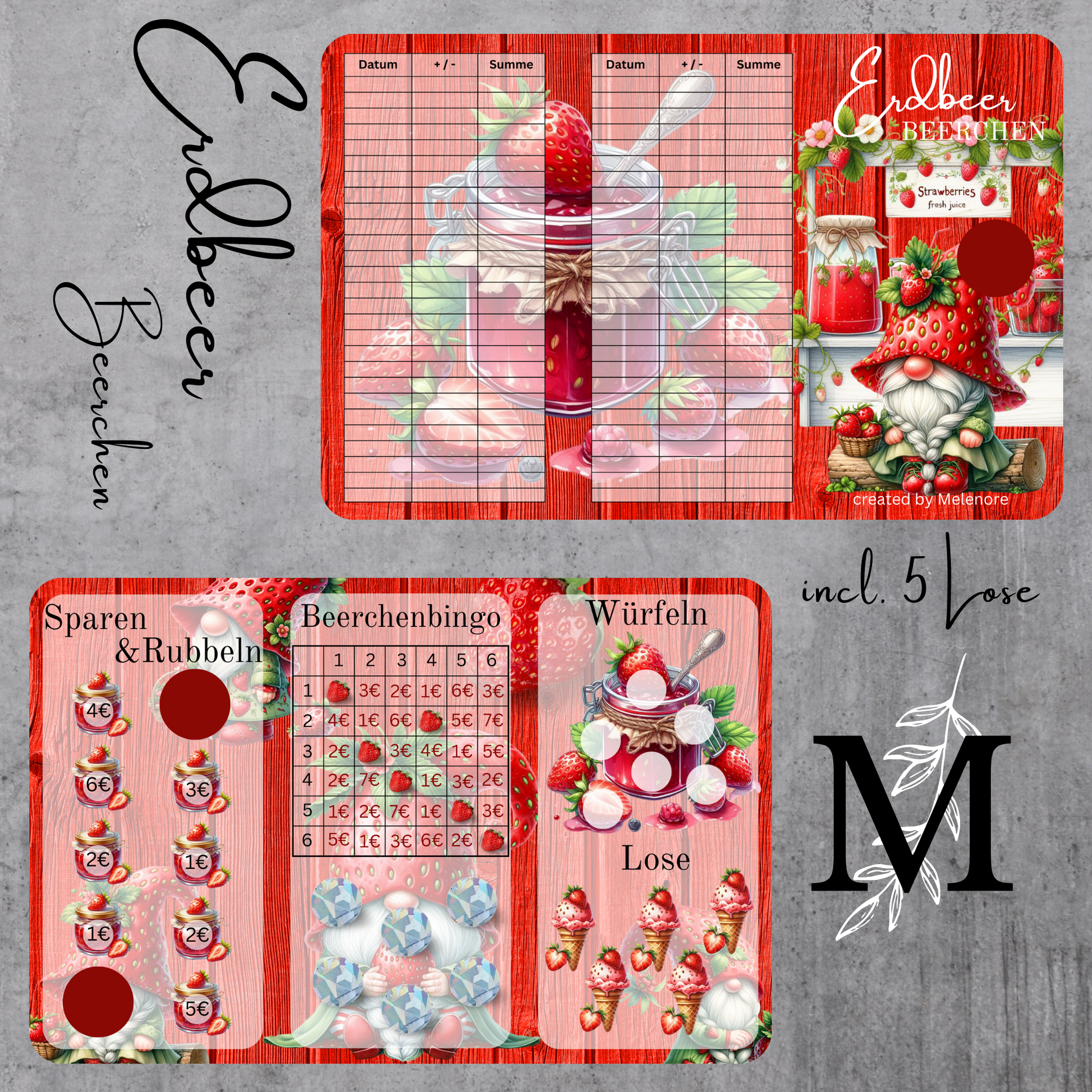 Die "Erdbeer Beerchen" Sparchallenge ist eine Dreierklappkarte. Bei dieser Challenge liegen die einzelnen Sparbeträge zwischen 1 Euro und 10 Euro. Insgesamt können hier 170 Euro +? gespart werden.