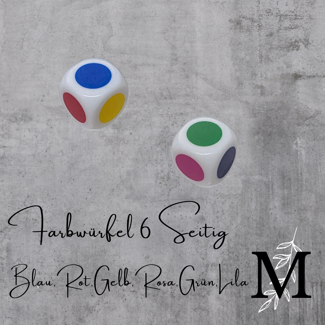 Der „ Farbwürfel “ ist sechsseitig und hat die Farben Rot, Blau, Gelb, Grün, Rosa und Lila