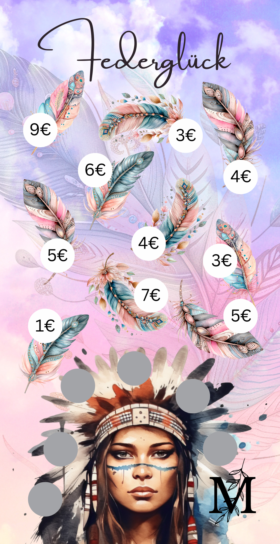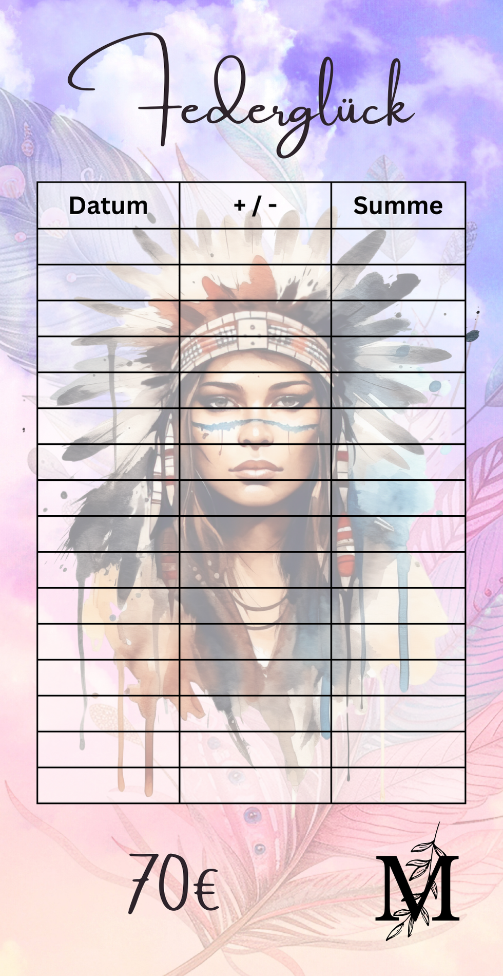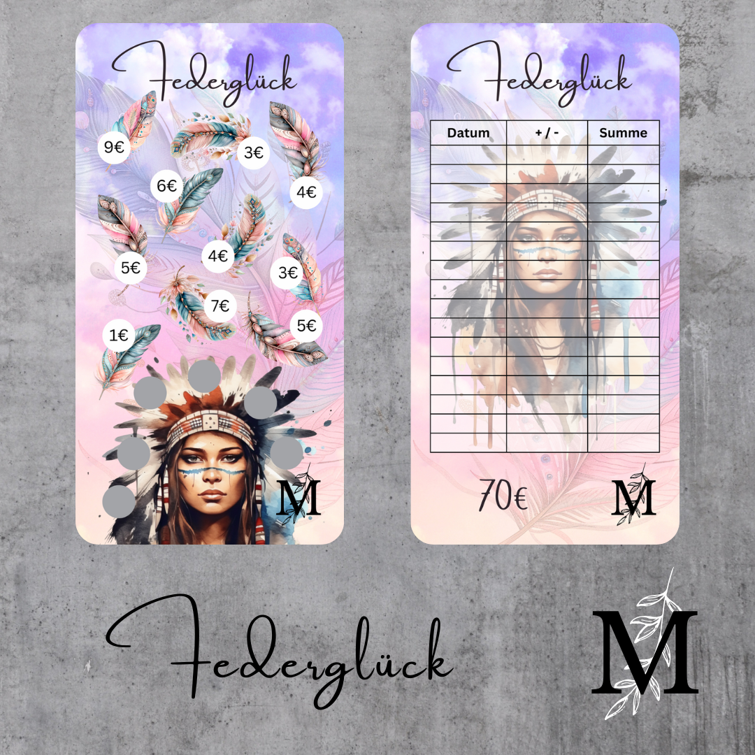 Die "Federglück" Sparchallenge kommt mit einem passenden Tracker (Vorder- und Rückseite bedruckt).