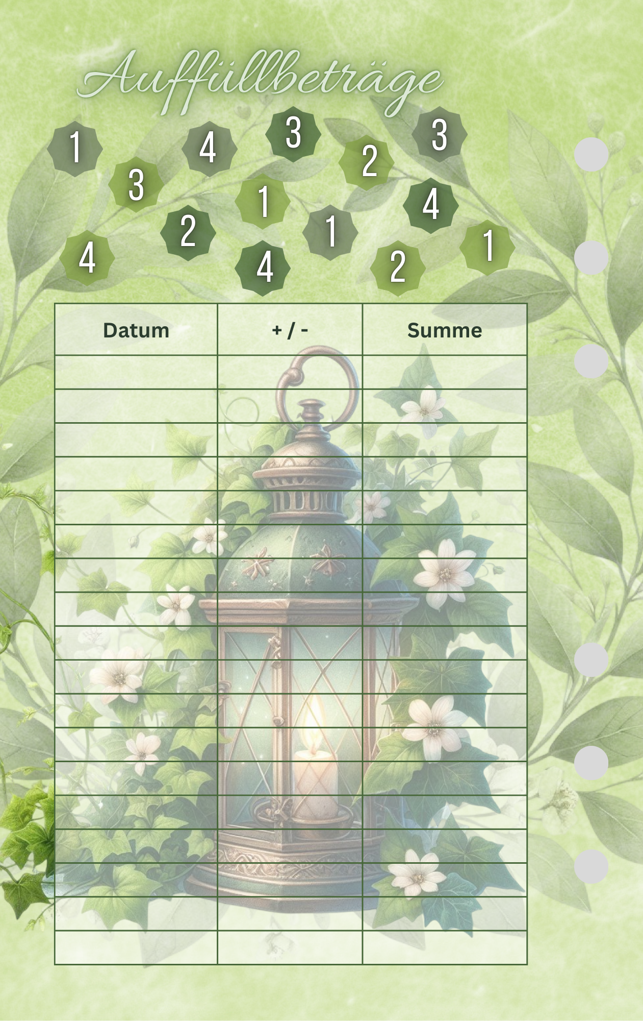 Der Tracker befindet sich auf der Rückseite. Ihr bekommt zusätzlich ein Deckblatt und 3 passende Lose.