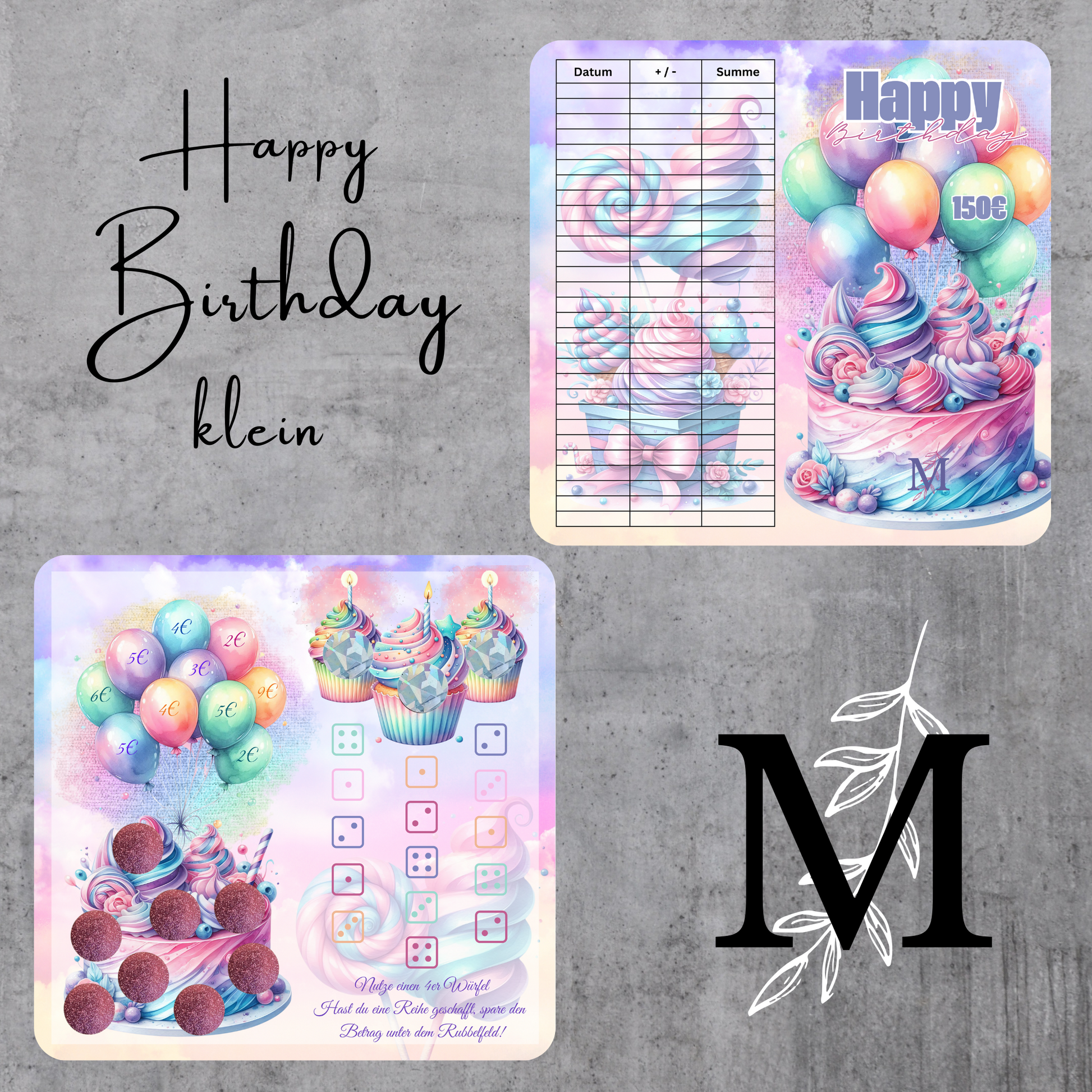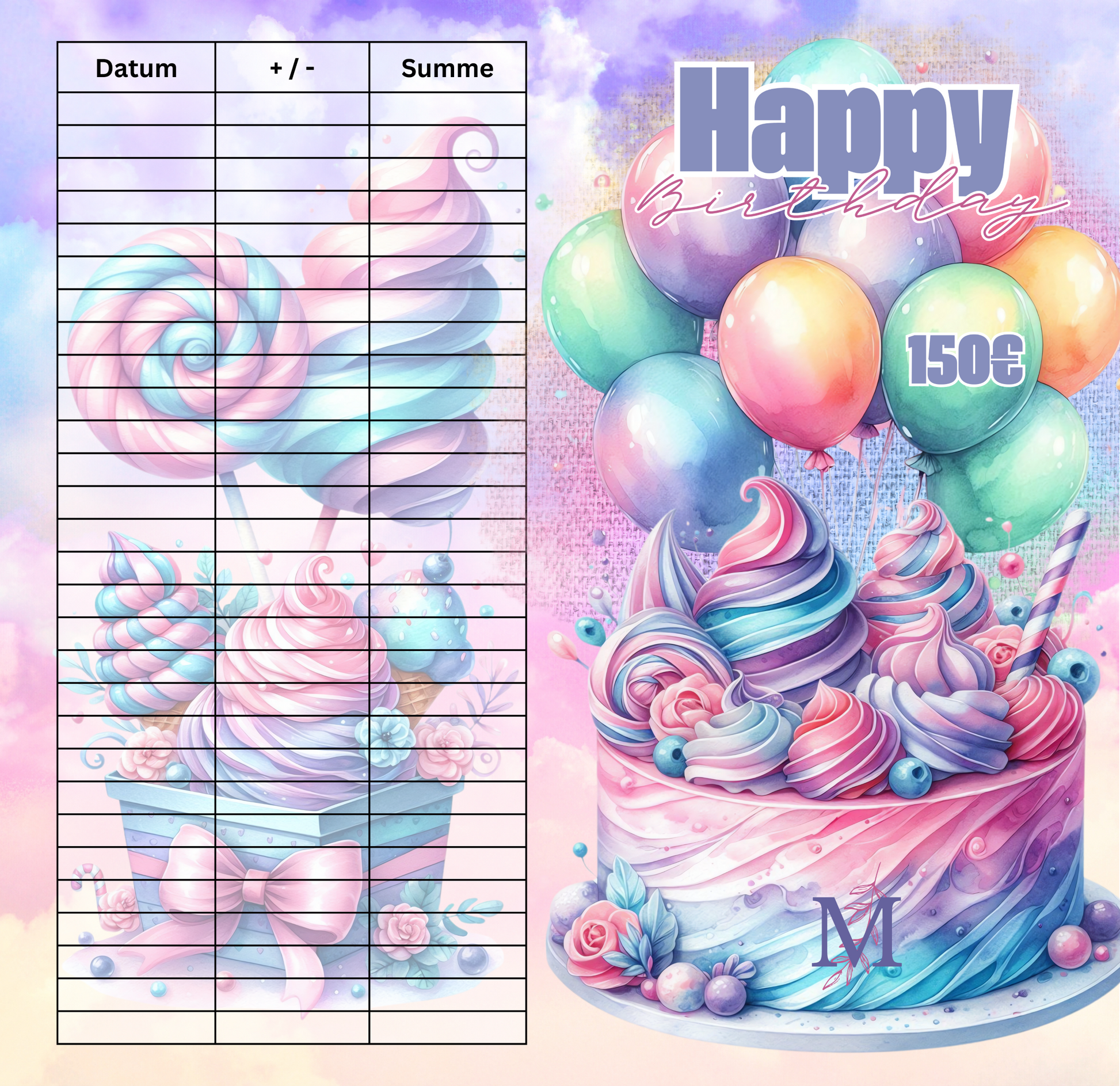 Bei der Happy Birthday 150 Euro Sparchallenge handelt es sich um eine Klappkarte.