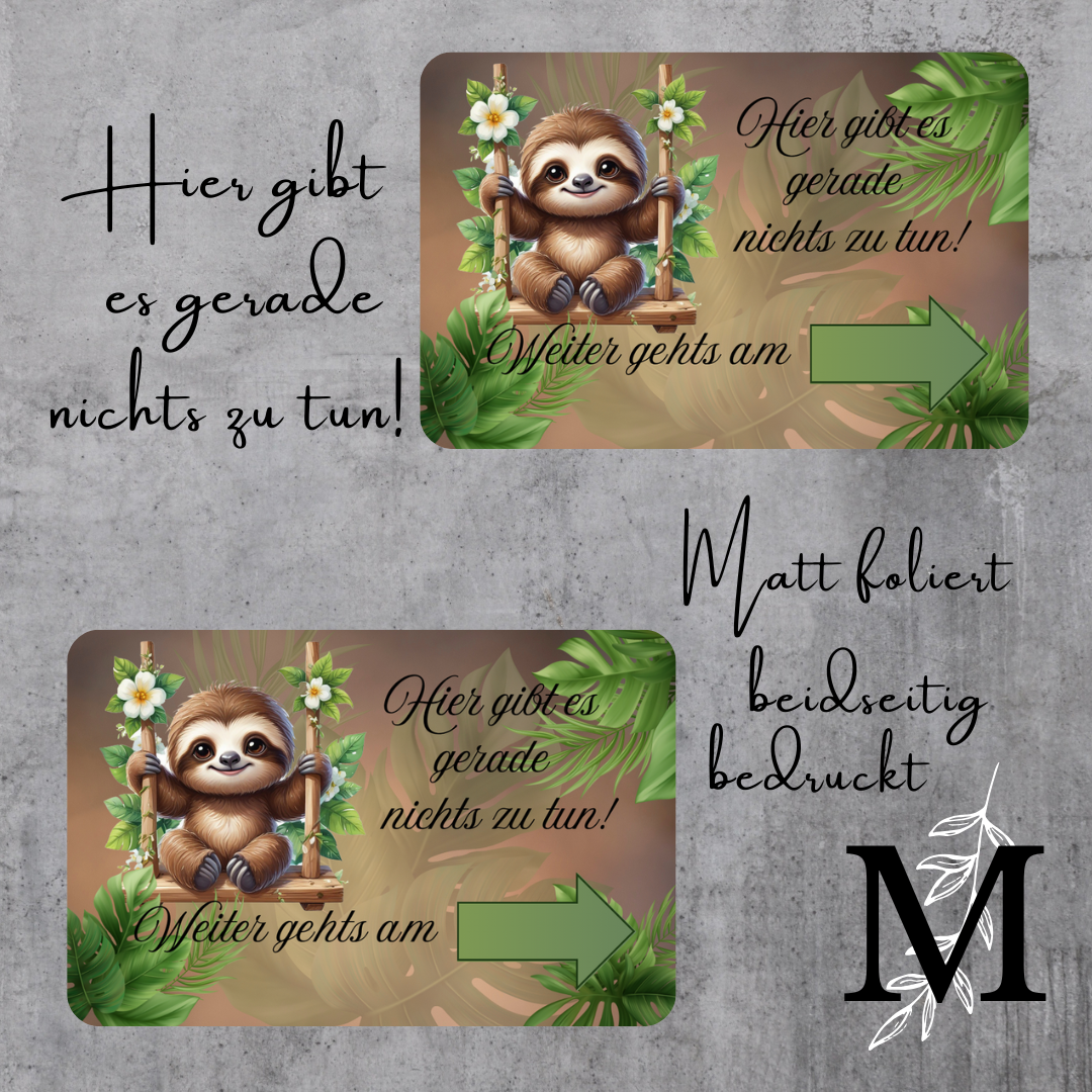 Die folierte Karte „Hier gibt es gerade nichts zu tun!“ ist beidseitig bedruckt.