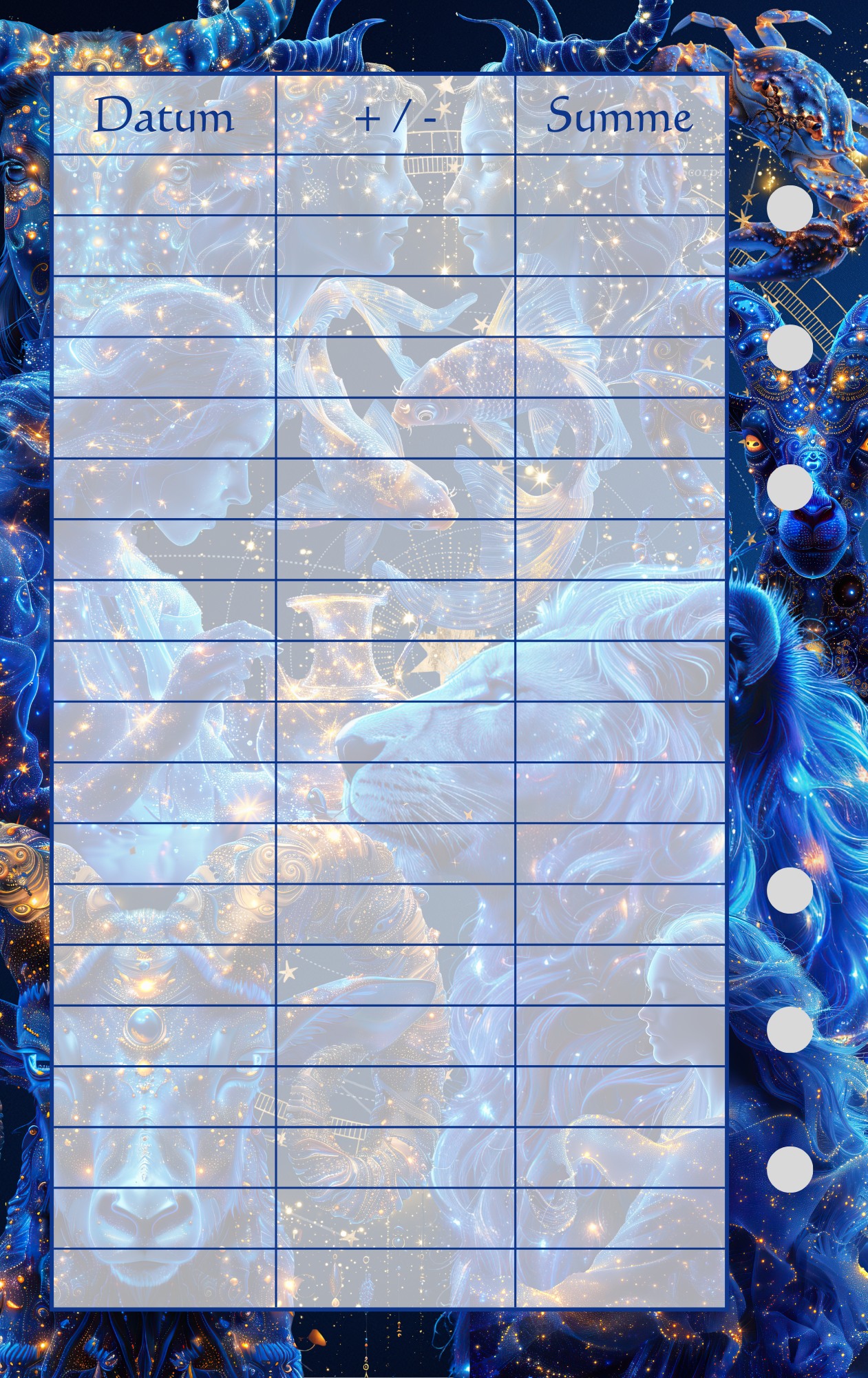 Hier ist jedes Sternzeichen 1 x vertreten. Die Challenge besteht nur aus Rubbelfeldern.
