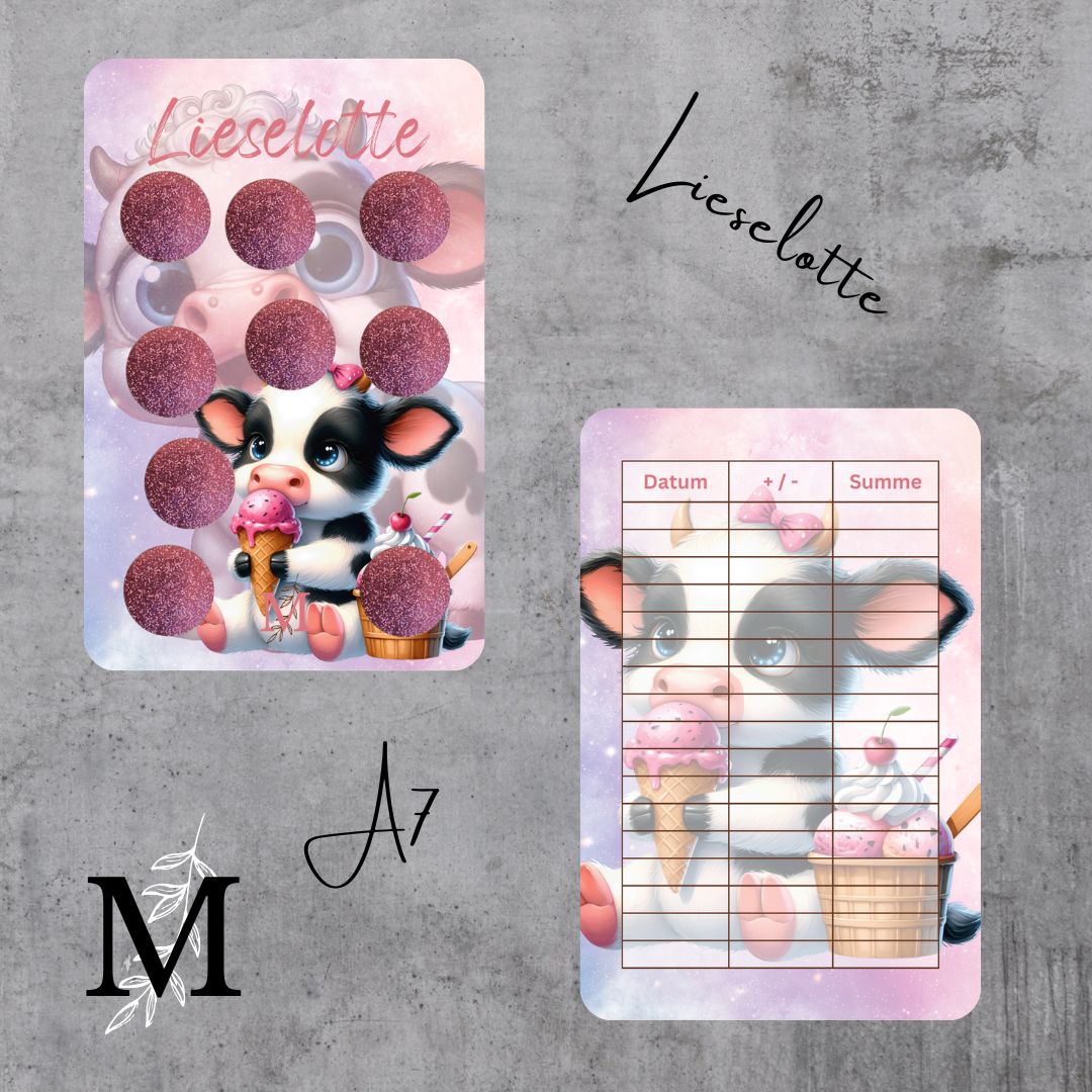 Die „Liselotte“ Sparchallenge kommt mit einem passenden Tracker (Vorder- und Rückseite bedruckt).