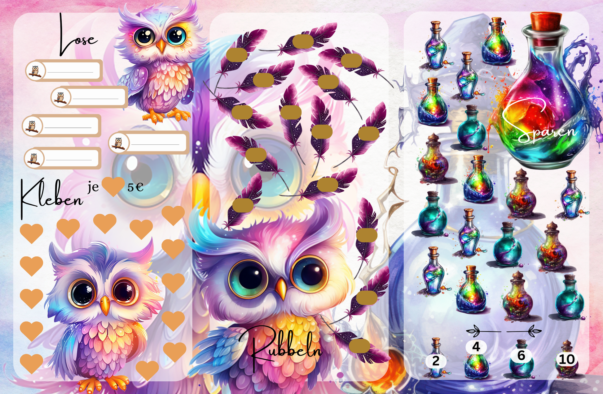 Die magisches Eulenreich Sparchallenge ist eine Dreierklappkarte. Bei dieser Challenge kannst du 250 Euro + ? sparen.