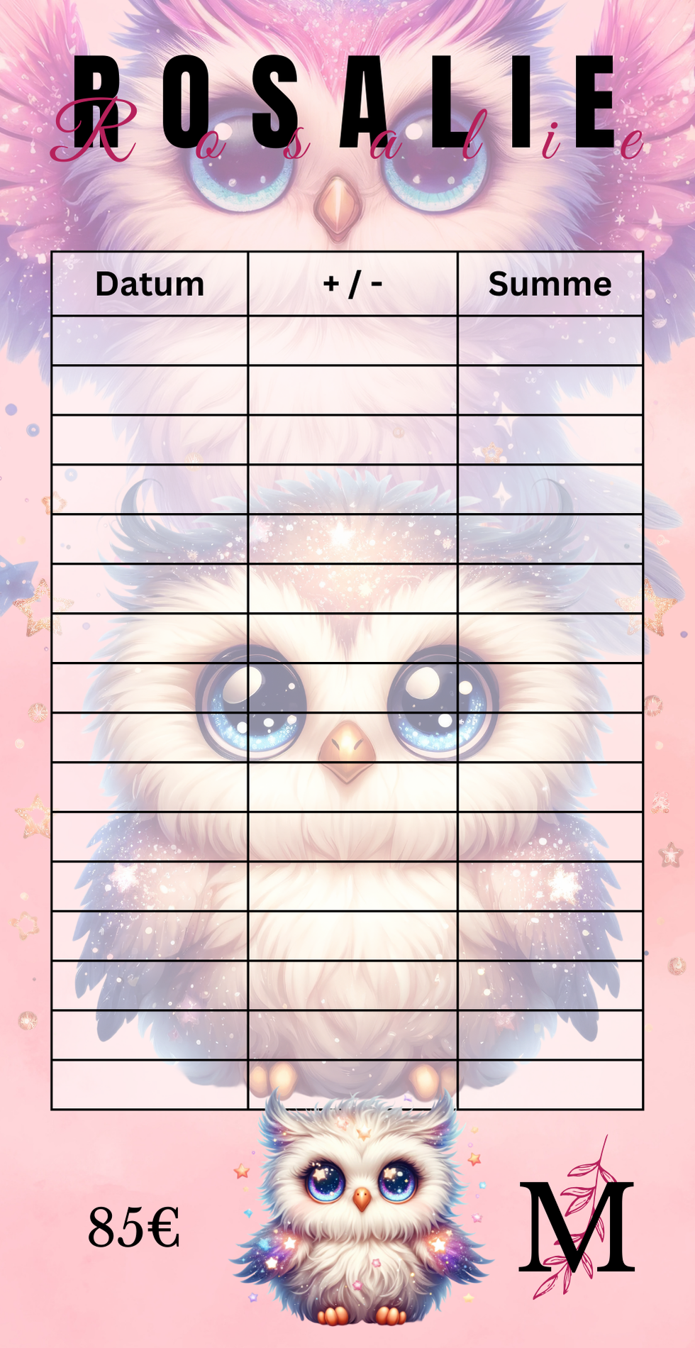 Die "Rosalie" Sparchallenge kommt mit einem passenden Tracker (Vorder- und Rückseite bedruckt).