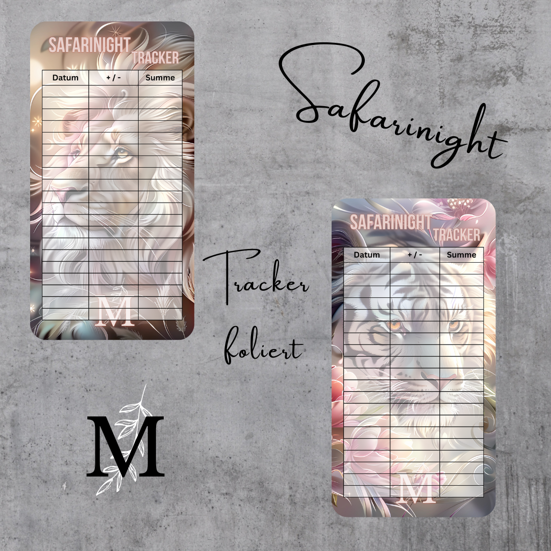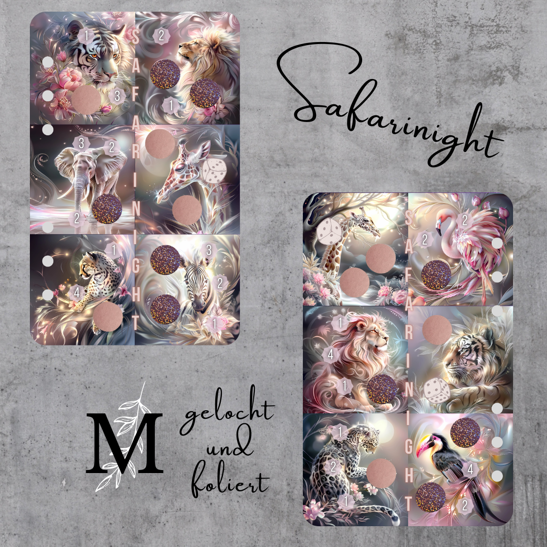 Das Sparspiel „Safarinight“ Kommt mit einem folierten und gelochten Spielfeld, einem folierten Deckblatt und einem folierten Tracker.