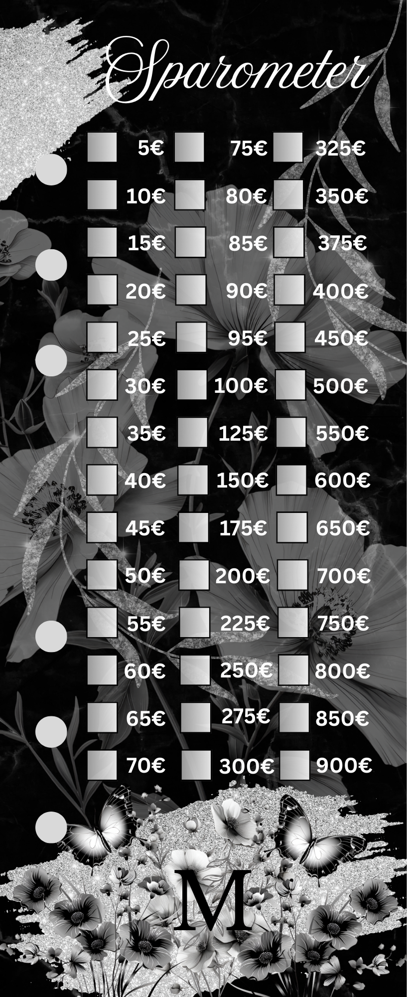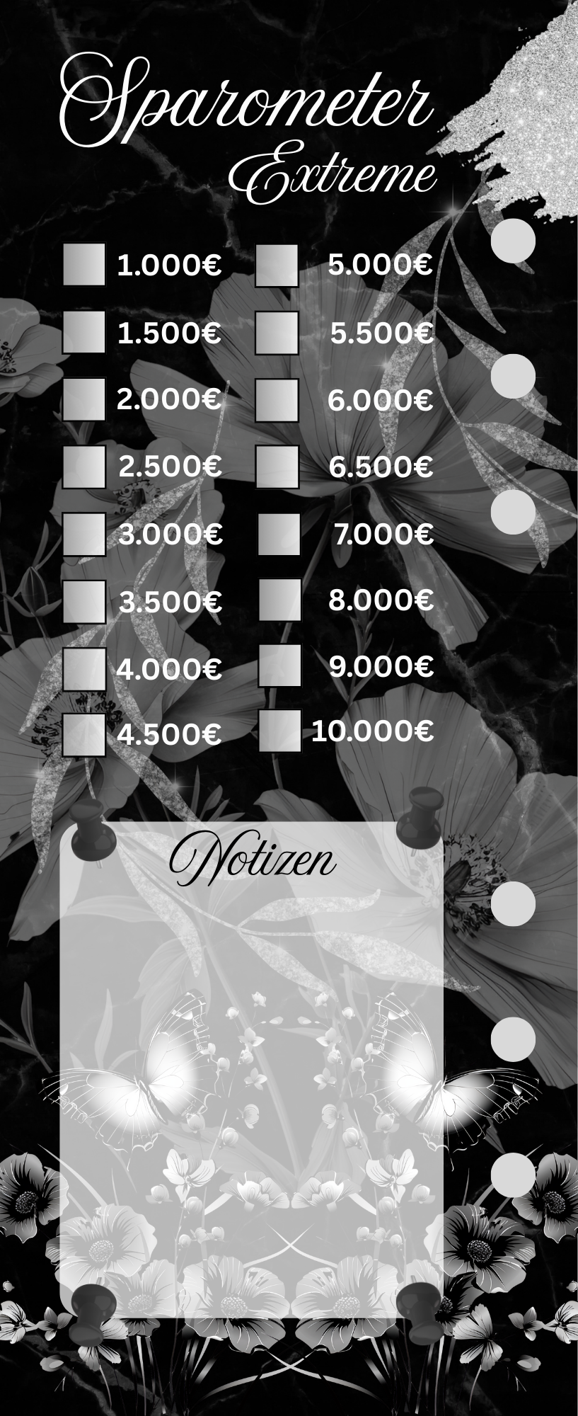 Bei dem „Sparometer“ handelt es sich um ein matt foliertes Deckblatt, welches ihr abheften könnt. (Vorder- und Rückseite bedruckt).