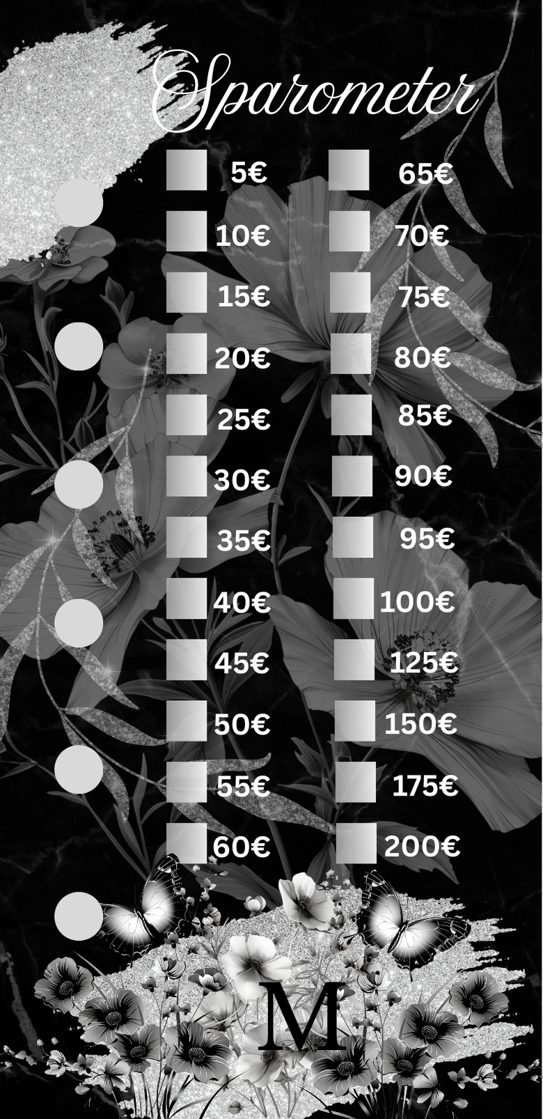 Bei dem „Sparometer“ handelt es sich um ein matt foliertes Deckblatt, welches ihr abheften könnt. (Vorder- und Rückseite bedruckt).