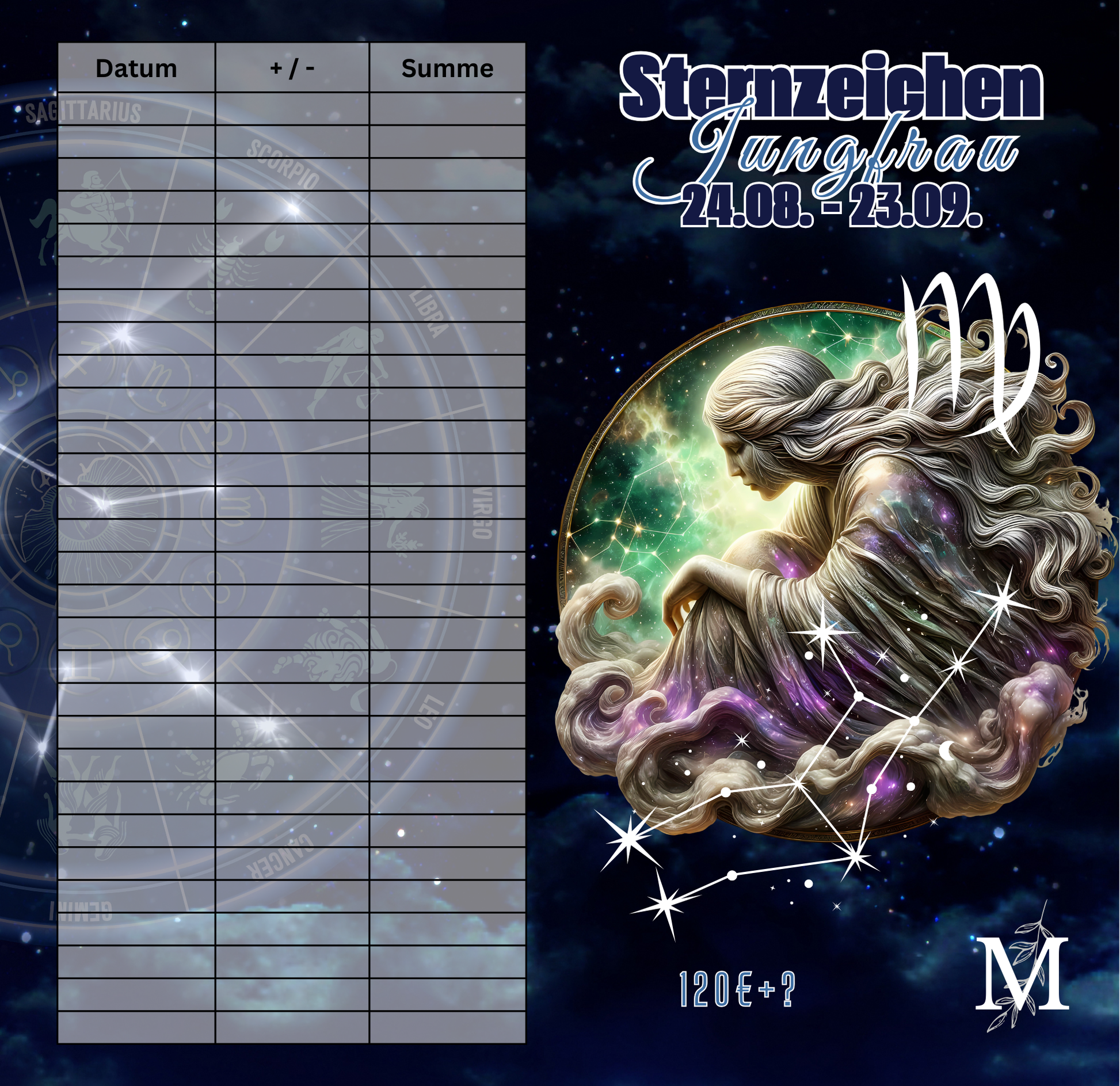 Bei der „Sternzeichen Jungfrau“ Sparchallenge handelt es sich um eine Klappkarte.