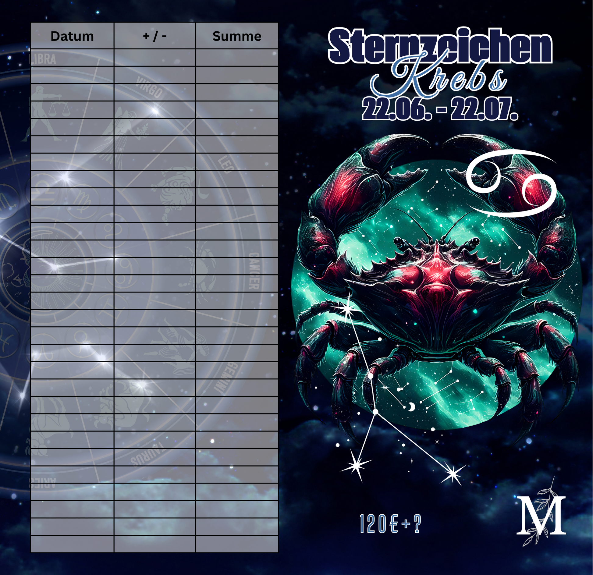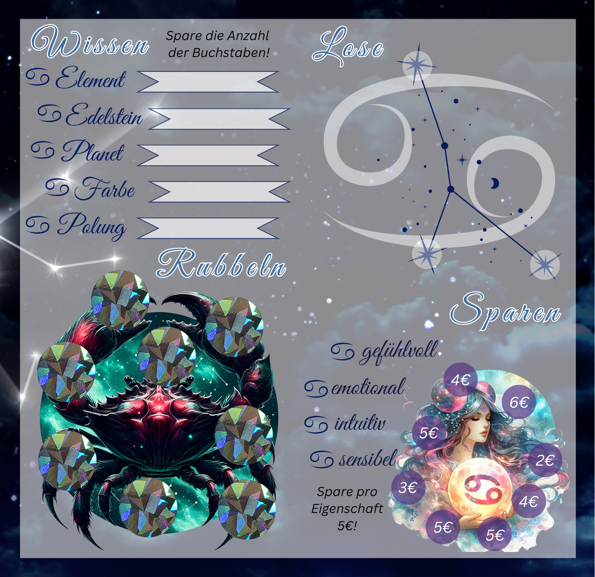 Bei der „Sternzeichen Krebs“ Sparchallenge handelt es sich um eine Klappkarte.