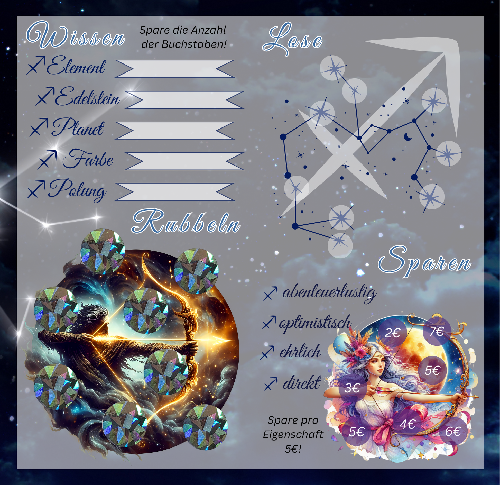 Bei der „Sternzeichen Schütze“ Sparchallenge handelt es sich um eine Klappkarte.