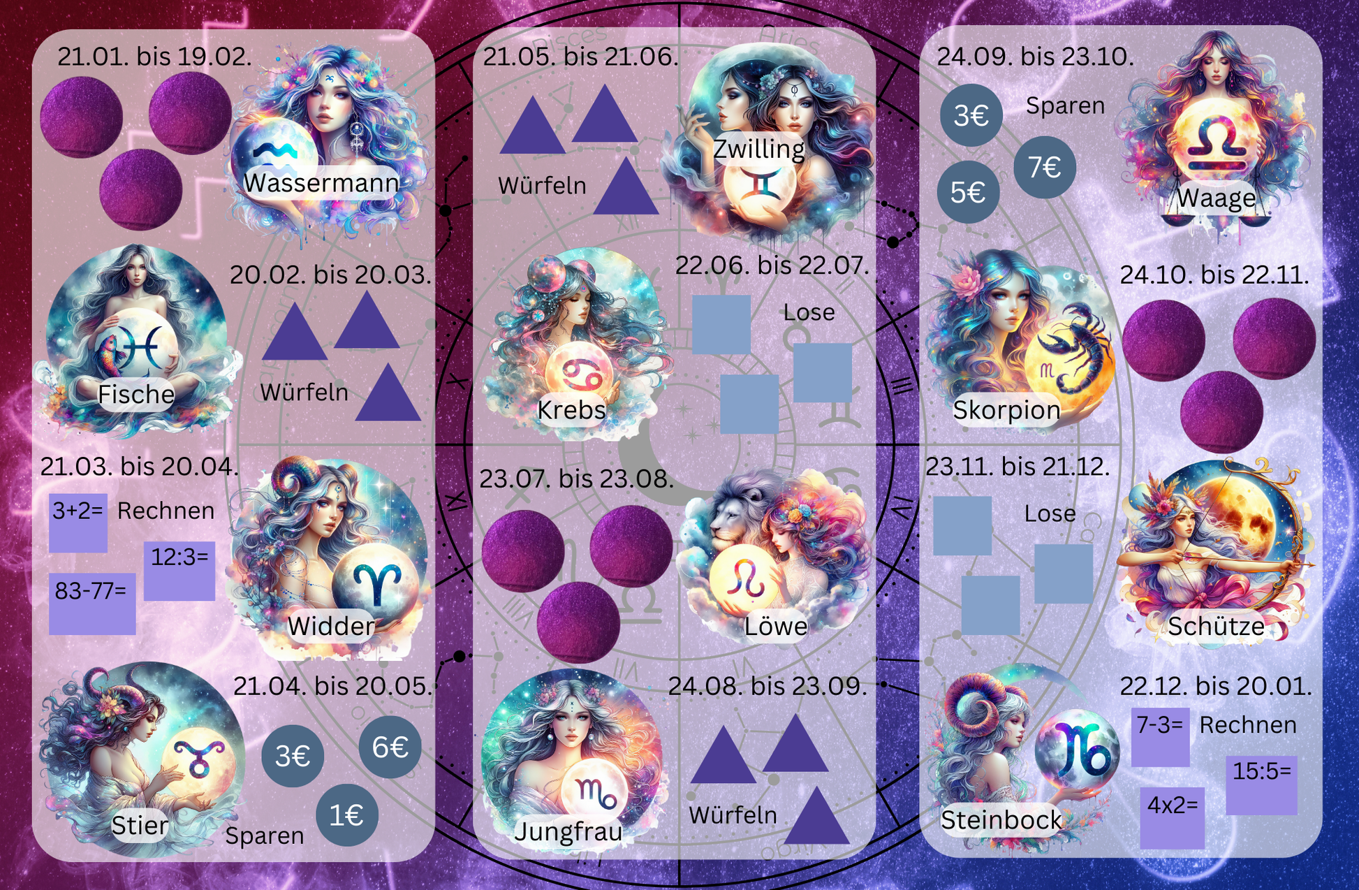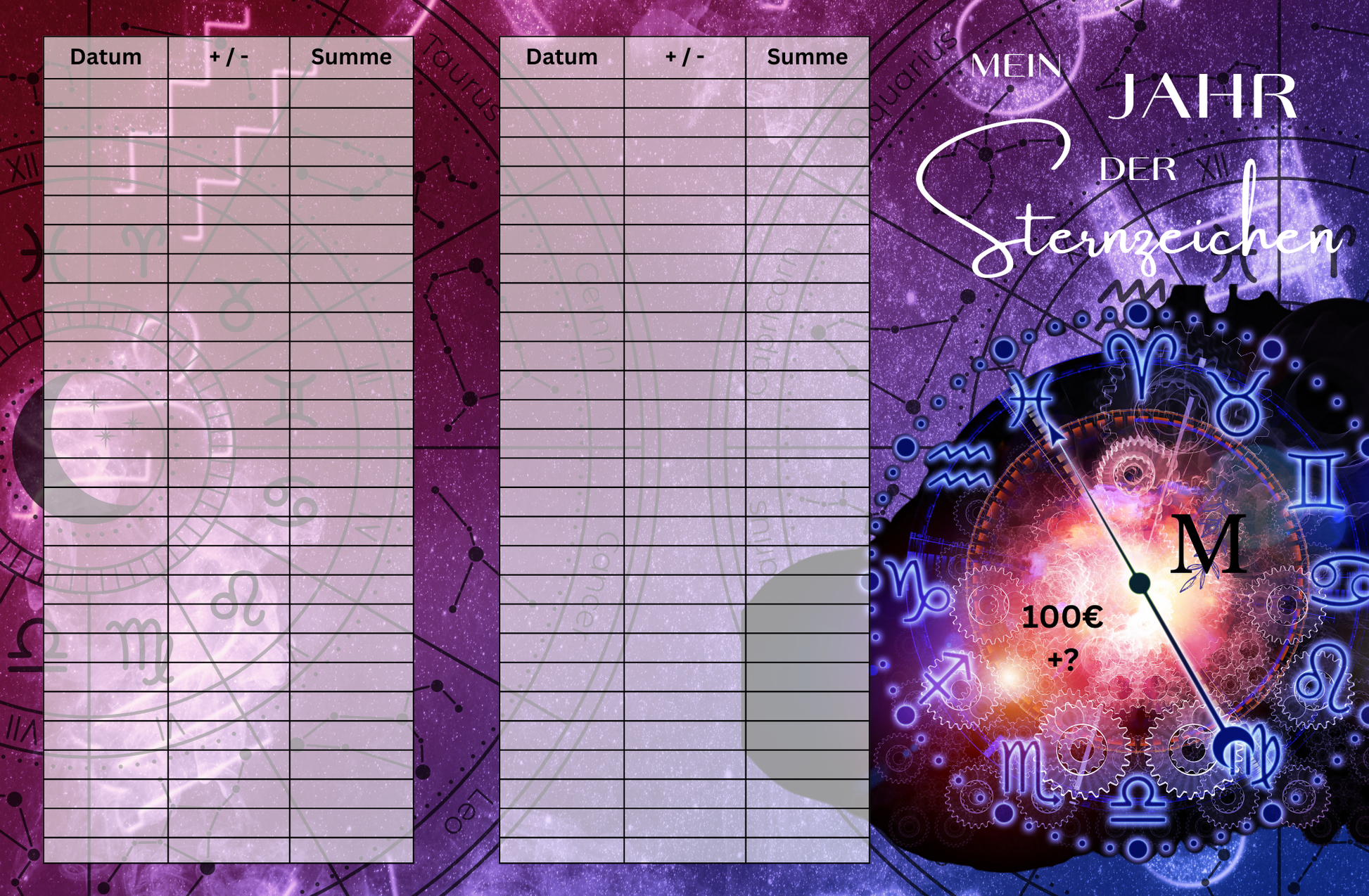 Die "Mein Jahr der Sternzeichen" Sparchallenge ist eine Dreierklappkarte.