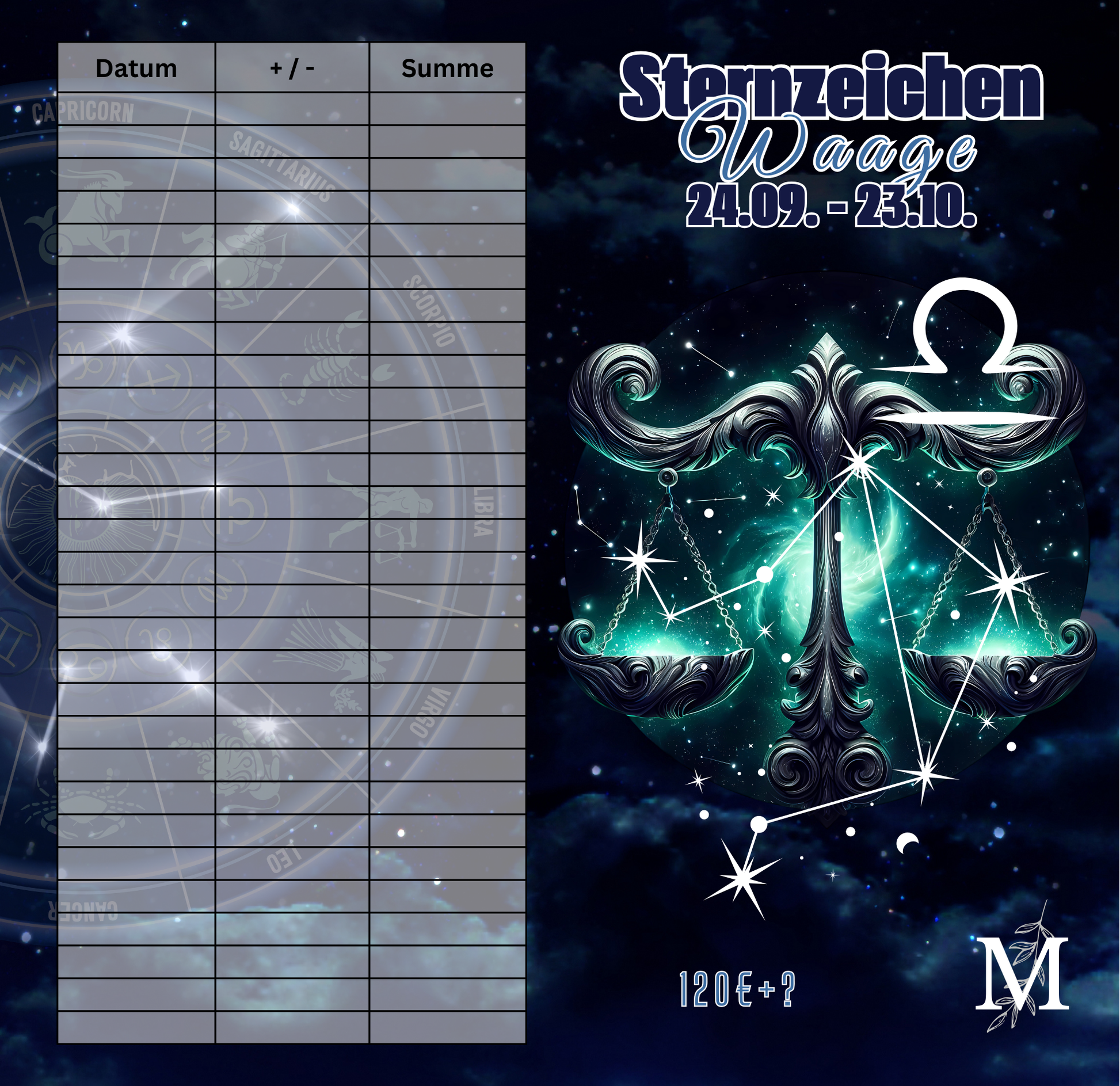 Bei der „Sternzeichen Waage“ Sparchallenge handelt es sich um eine Klappkarte.