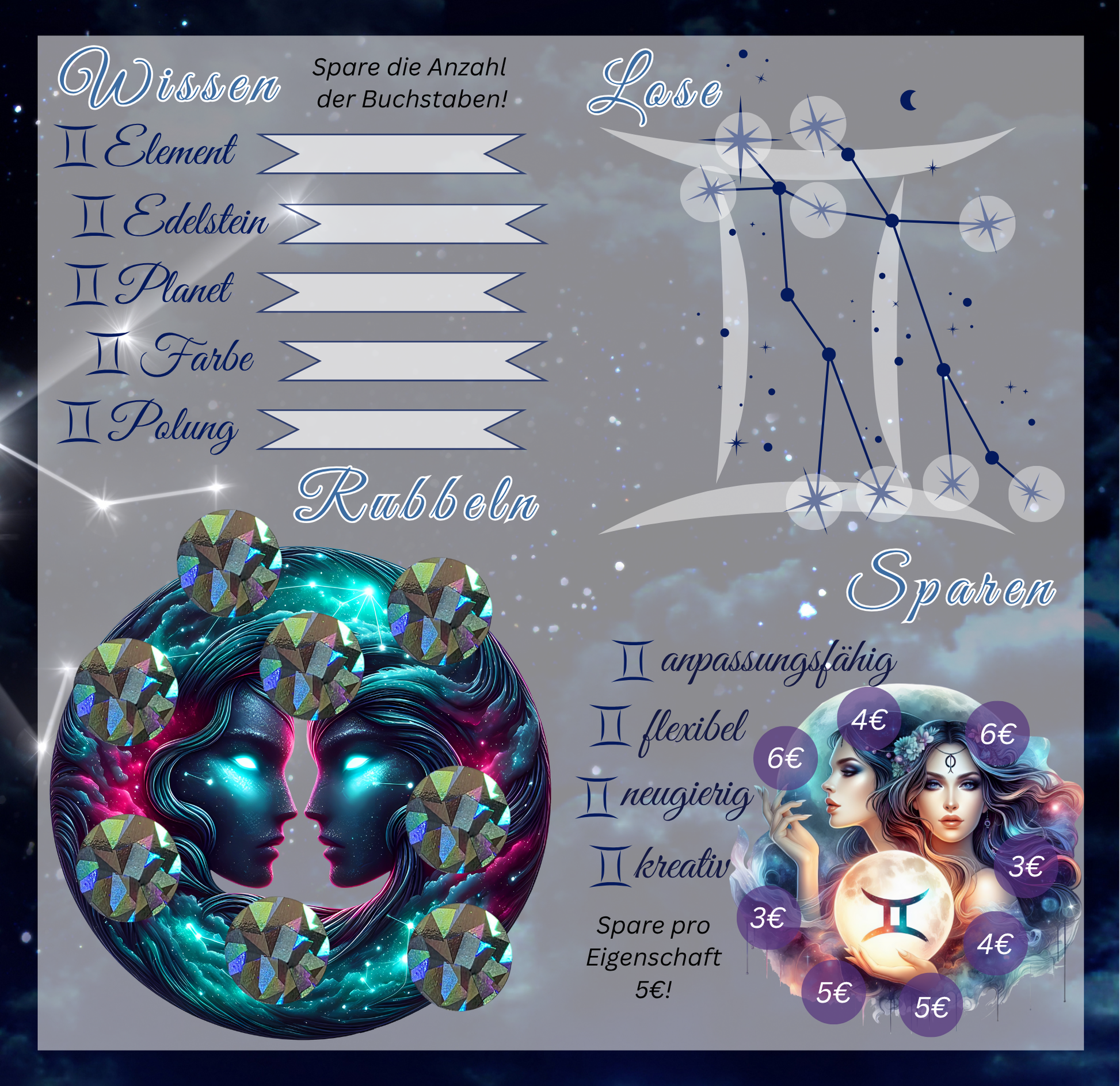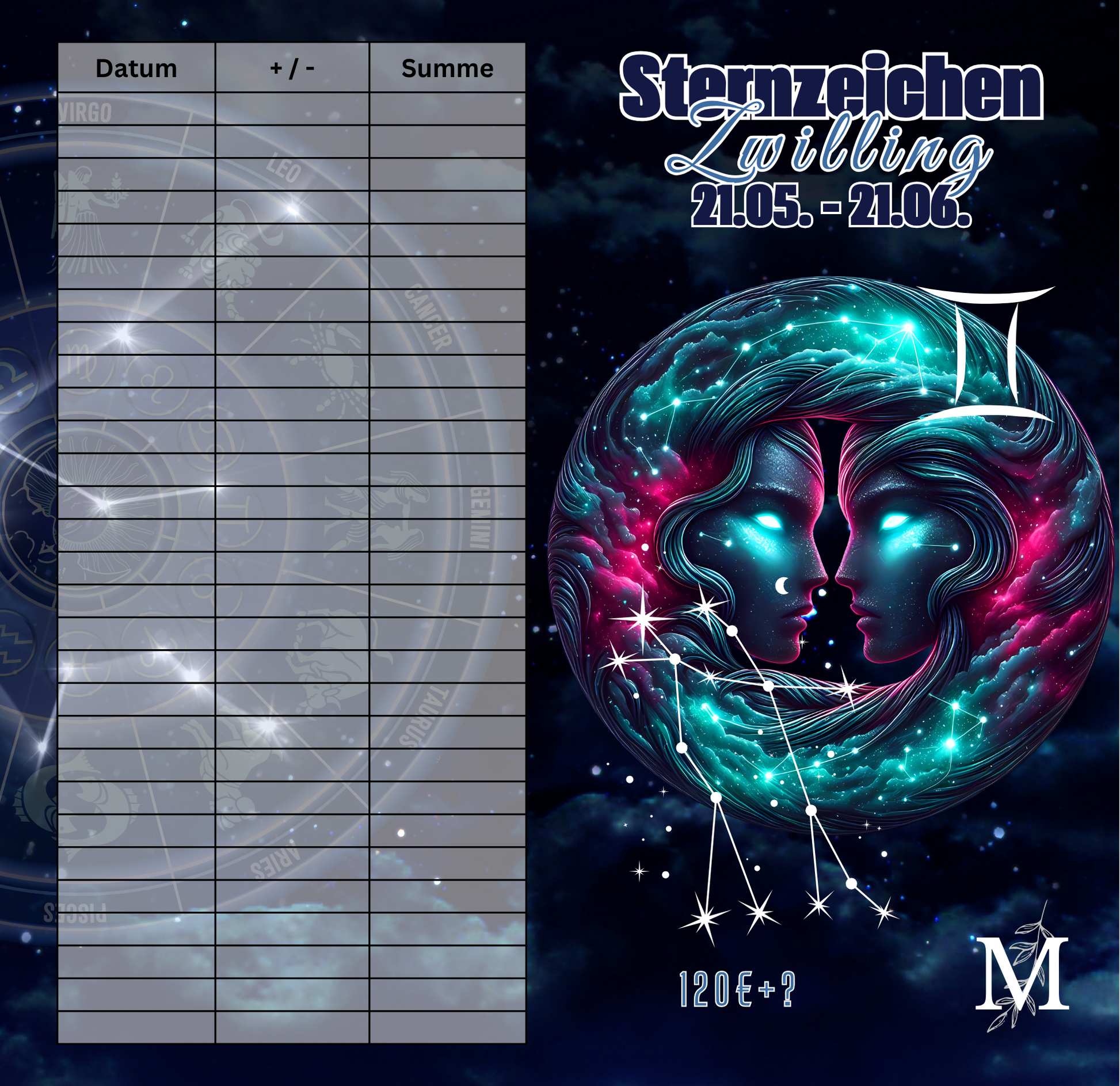 Bei der „Sternzeichen Zwilling“ Sparchallenge handelt es sich um eine Klappkarte.