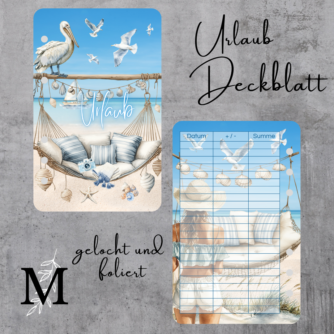 Das Sparspiel kommt mit einem passenden Tracker auf der Rückseite des Deckblattes und 10 passenden Losen. Das Deckblatt kann im Anschluss weiterverwendet werden für die Kategorie Urlaub.