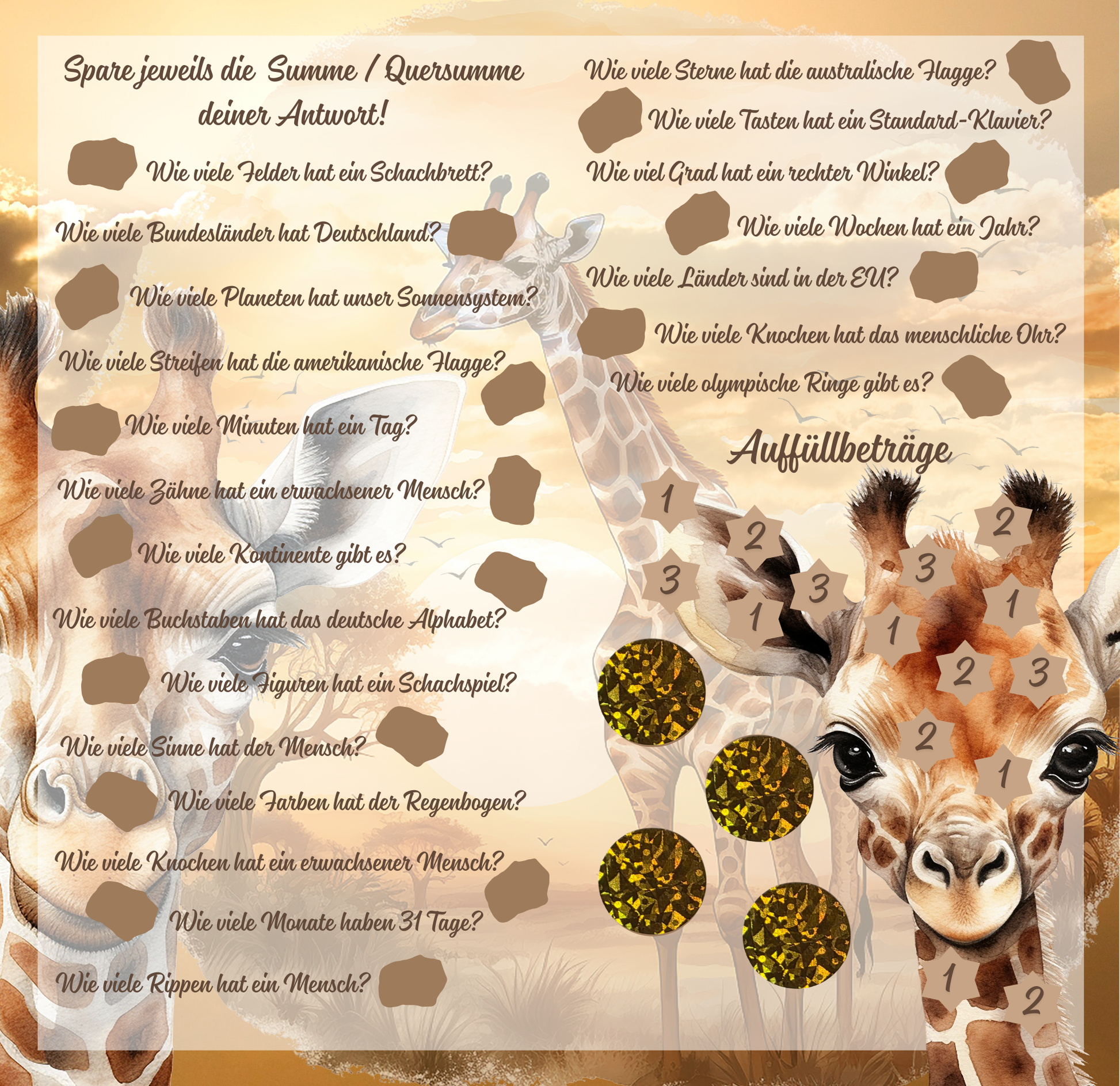 Die Challenge besteht aus vielen Fragen, Rubbelfeldern und Auffüllbeträgen.